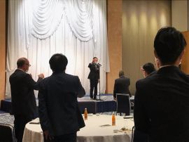 その後、協会顧問の長屋光征・小川祐輝 両県議会議員の来賓挨拶のあと、棚橋監事(会計顧問)発声で乾杯し、懇親し盛会で散会となりました。
