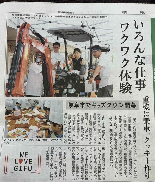 協会ブースでお仕事体験した子供達が岐阜活性化の未来を担い、保護者も含め解体工事に理解を深めてもらえるイベントでした。