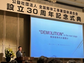 ■2023年9月22日(金) 令和5年9月22日(金) 東京・明治記念館において(公社)全国解体工事業団体連合会設立30周年記念式典・祝賀会が開催されました。