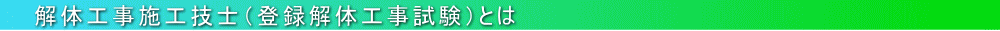 ・解体工事業に従事する現場管理者等の解体工事技術・廃棄物の適正処理・建設リサイクル法に対応した施工管理能力の向上を図ることを目的する資格制度で、国土交通大臣登録試験です。