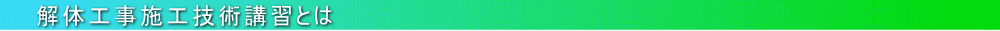 ・解体工事業に携わる者等が建設リサイクル法その他の関連法令等に的確に対応できる施工技術を確保することを目的として公益社団法人全国解体業連合会が実施する講習です。