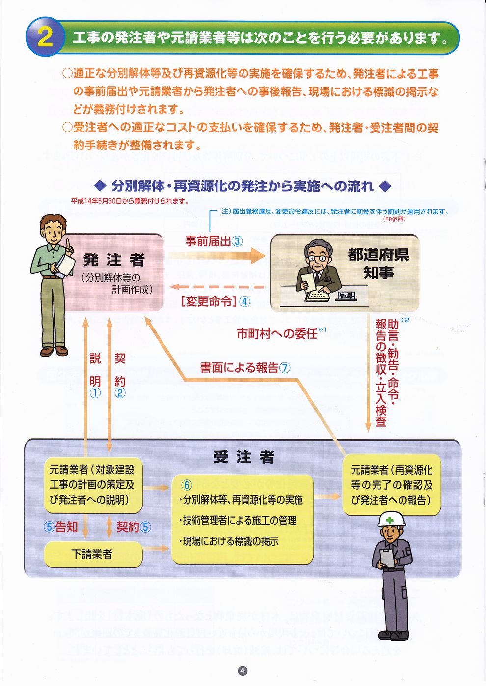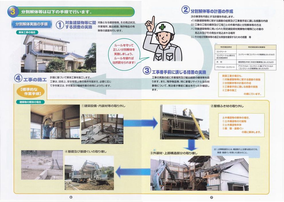 解体・改修工事の元請業者は、労働安全衛生法第29条から第32条に定める元方事業者の講ずべき措置等を行う必要があります。